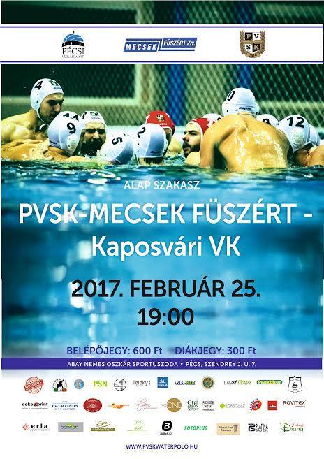 A pécsi pólósoknak nem sok ideje volt a pihenésre, holnap, azaz február 25-én, szombaton a Pécs ellenfele ezúttal a Kaposvár lesz, a találkozó 19 órakor kezdődik az Abay Nemes Oszkár Sportuszodában.