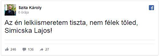 a Magyar Nemzet szerezte meg azokat a dokumentumokat, amelyek szerint Kaposvár fideszes polgármestere a Kádár-korszakban ügynökként dolgozott 9 éven át. Szita Károly Facebook-oldalán reagált a lap írására, mindössze egyetlen mondattal.