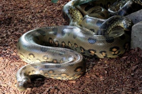 Ez egy zöld anakonda, legalább 50 kiló, 4 méter hosszú, 50-60 kiló, amikor nekiáll enni, akkor megeszik 8-10 kiló húst egy evésre.